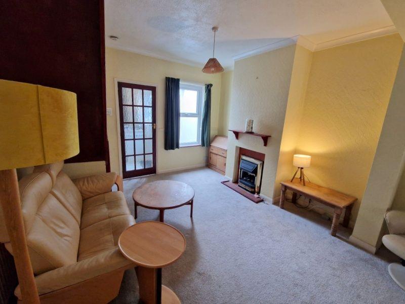 SITTING ROOM/LOUNGE/DINING ROOM: 6.55m x 3.66m (21'6" x 12'0") narrowing to 2.74m (9') into wall recess. Bright spacious through room with double glazed windows to front and rear aspect. In the dining area there is a radiator, attractive wooden fire surround with open fire and patterned tiled inset and gas fire set into wall recess (this is not a functional gas fire) with tiled hearth and shelf over, staircase rising to first floor landing.