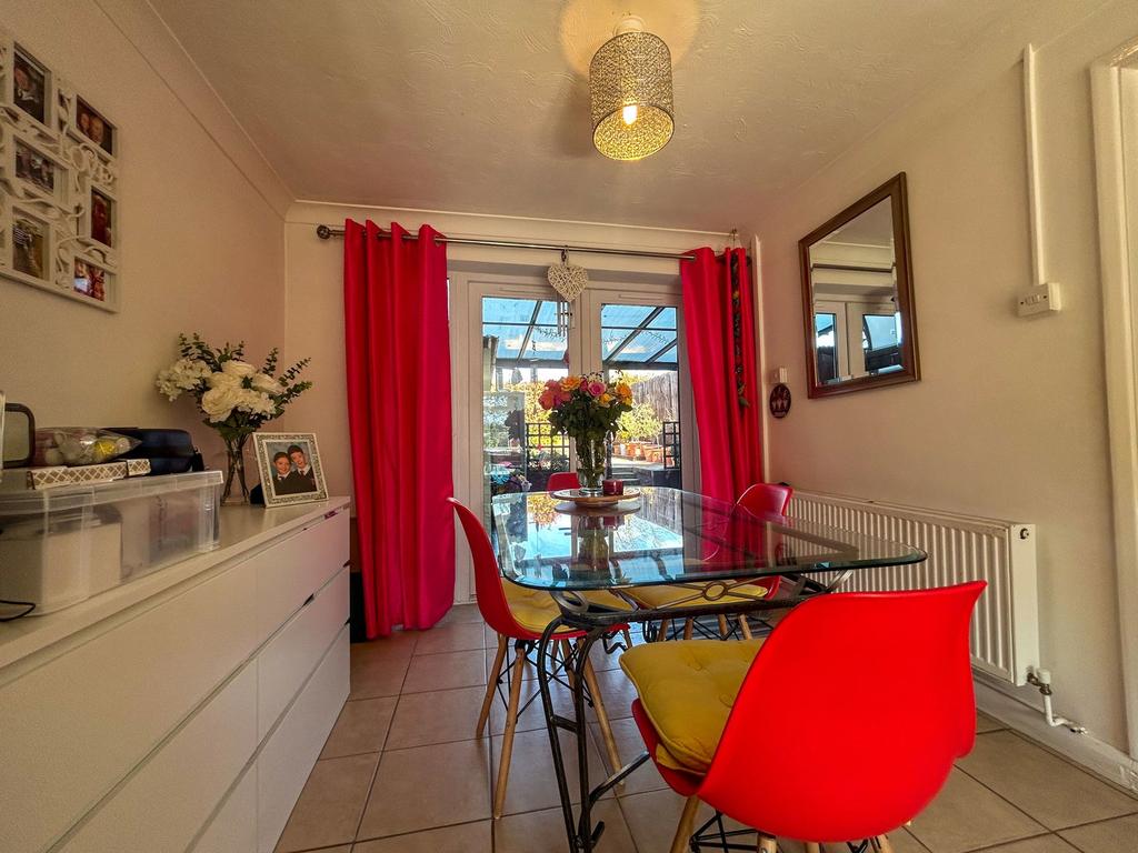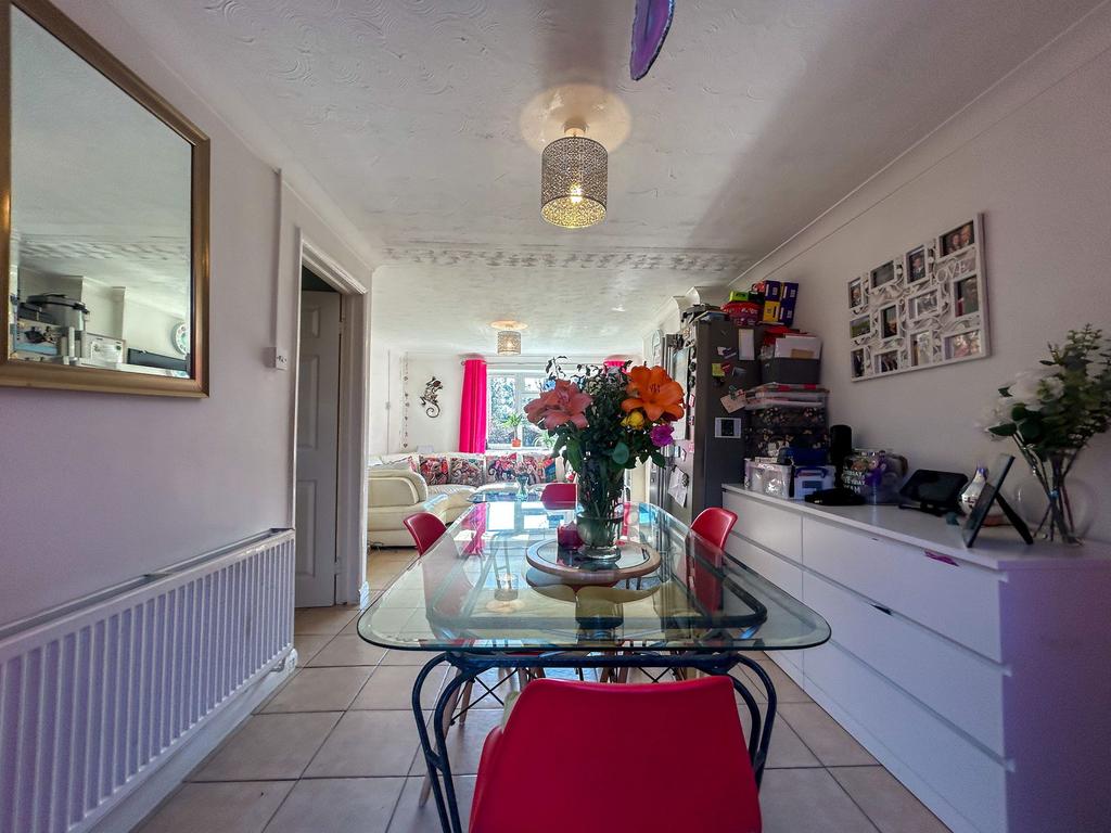 Living/Dining Room - Bright dual aspect room offering ample space for furniture for both living and dining with a front aspect double glazed window, tiled flooring, two radiators and a set of French double glazed doors to the rear garden.