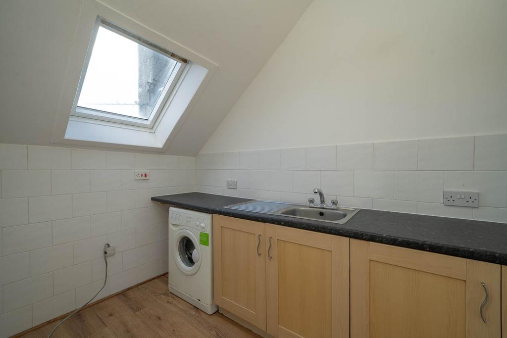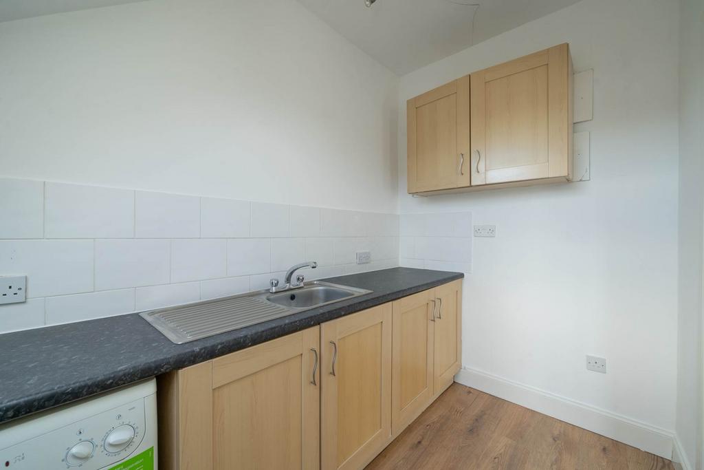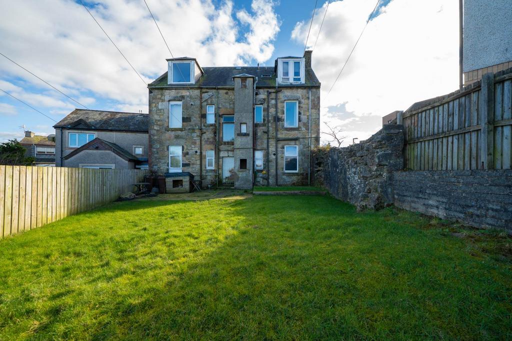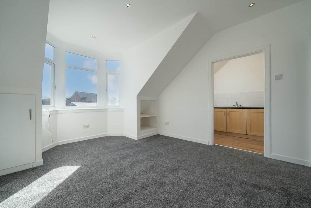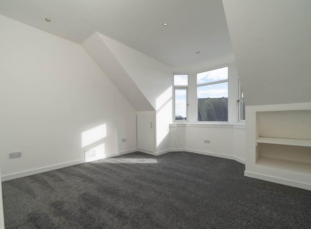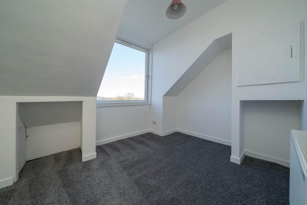 The upper flat consists of a spacious living room with feature bay window, space for dining area and built in storage. The bright fitted kitchen include floor and wall mounted cupboards. The large window floods the double bedroom with natural light. The 3-piece bathroom completes the property inside. Externally you are spoiled with the views from the communal garden.