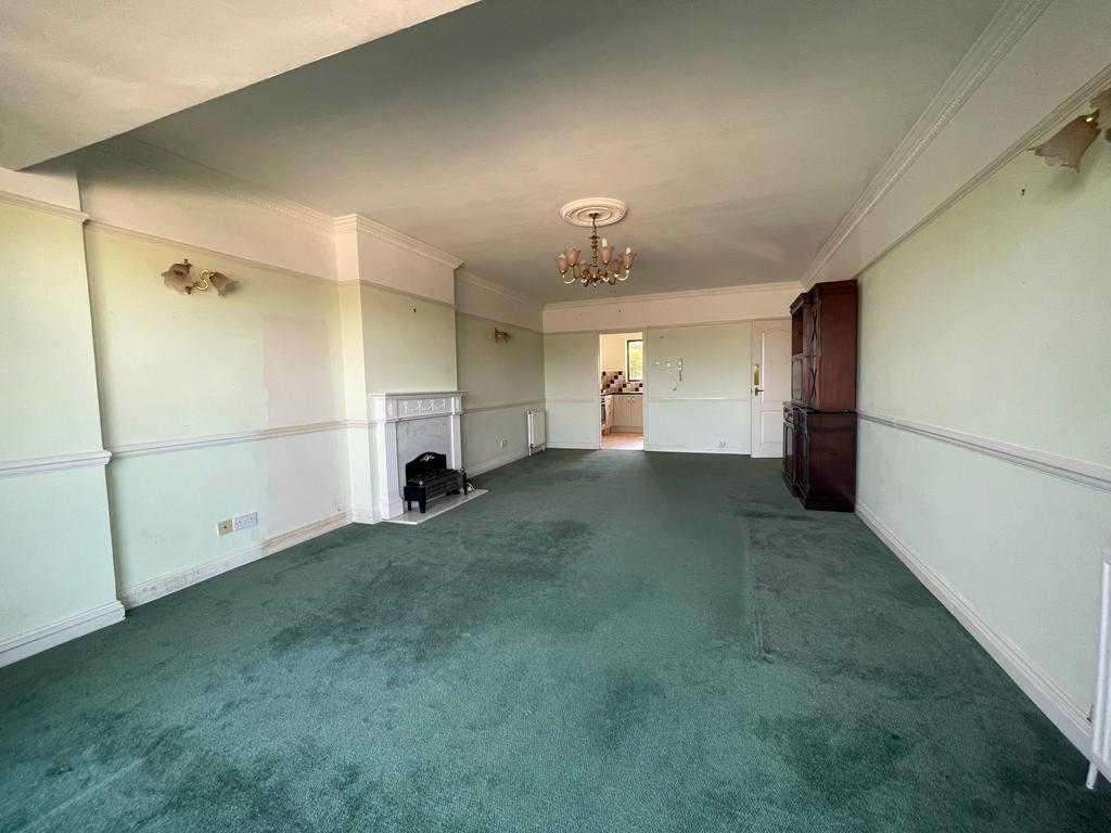 LOUNGE/DINER (N): 30’ (6.1m) x 11’3” (3.43m). Telephone point, security entry phone, 2 radiators, feature fireplace with electric fire, TV aerial point, wall lights. Double glazed doors to: BALCONY: 21’2” (6.45m) x 5’4” (1.63m). Tiled floor, brick and wrought iron surrounds, outside light. Views.