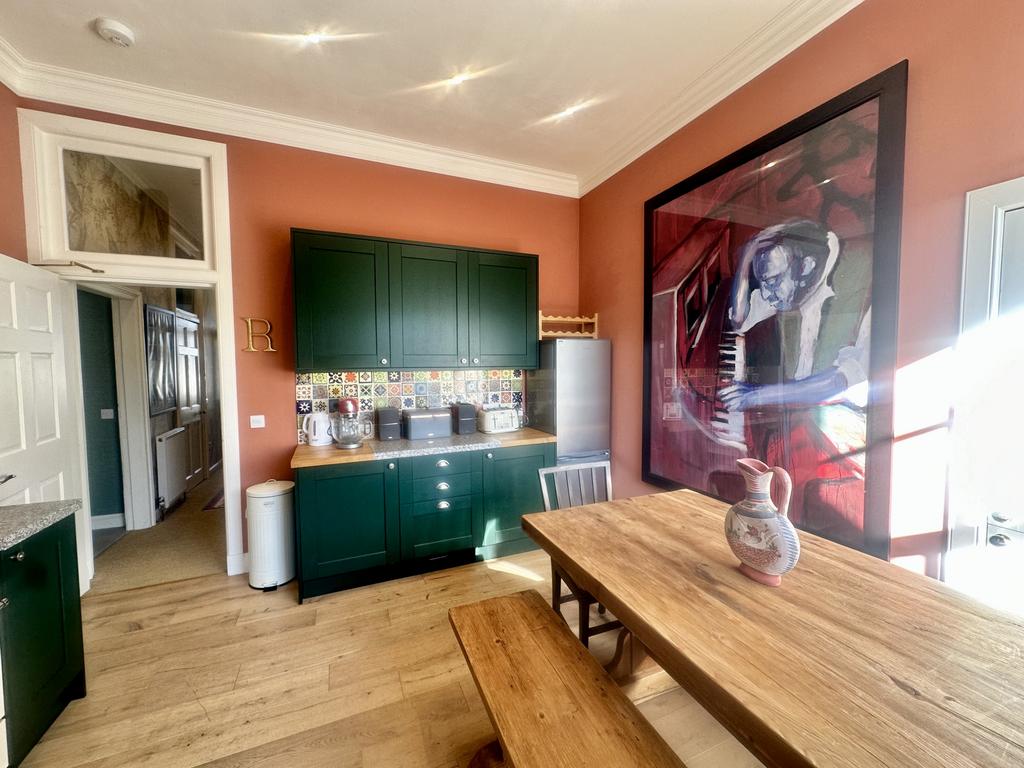 Bright and ample size kitchen with beautiful window seat looking out over the communal back garden. A smaller utility room off the kitchen completes the property.