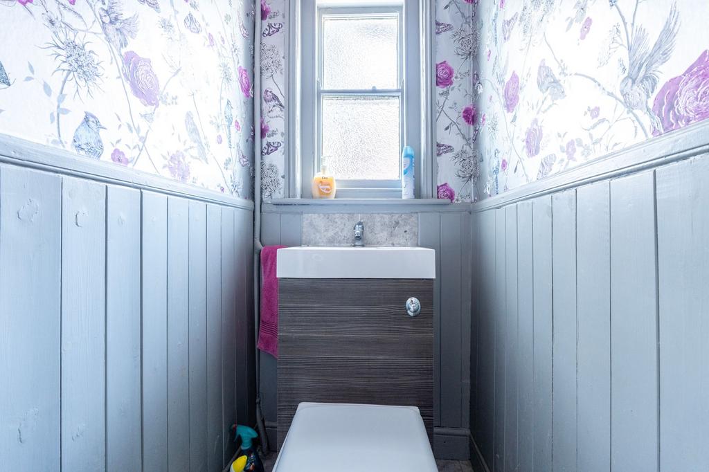 The first floor is home to three generously sized bedrooms, each with distinctive period elements like original cast iron fireplaces and delicate picture rails. The front bedroom offers an ideal home office setup, while the family bathroom includes a walk-in shower and freestanding slipper bath, all with a spectacular sea view—perfect for relaxing after a long day.