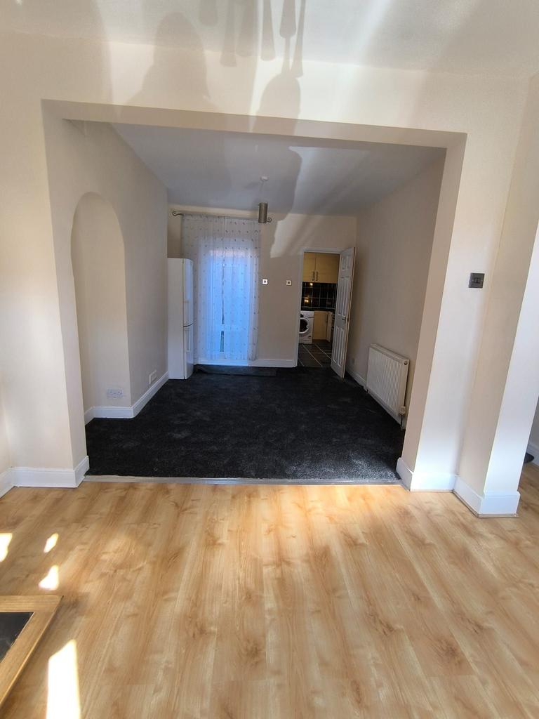 Open plan living/dining room, new carpets, feature fireplace, patio door to rear garden