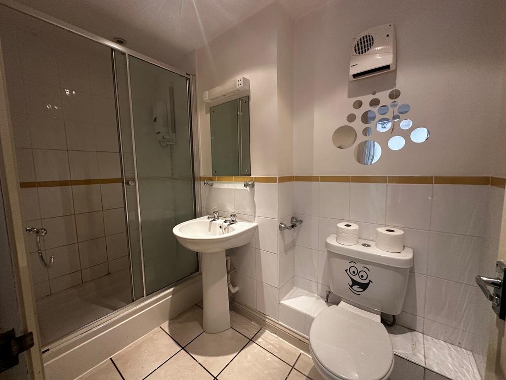 Shower room with double cubical and electric shower.