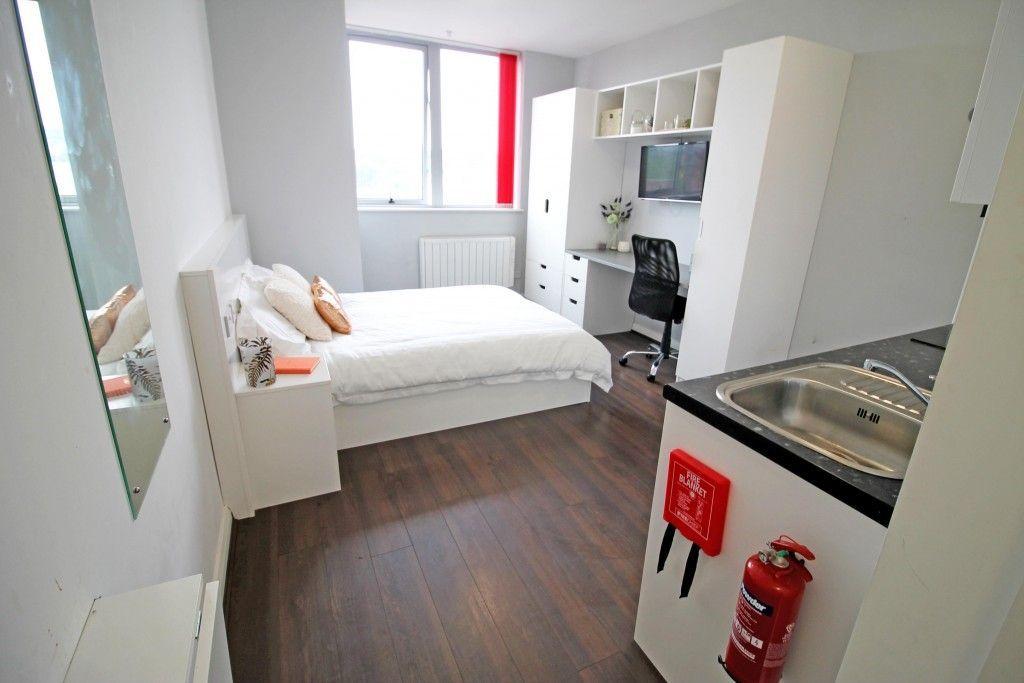 Each self-contained studio has been superbly designed and features a contemporary kitchen with two hobs, combi-microwave oven and a 50/50 fridge/freezer. The studio also includes a double bed, individual en-suite facilities, a flat-screen TV, and generous study and storage space. Free on-site facilities and lift access are available for all residents.
