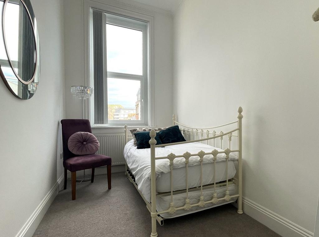 Two windows to side with lovely views towards Haven Cliff and sea glimpses. High ceiling with coving and ceiling rose. Radiator.