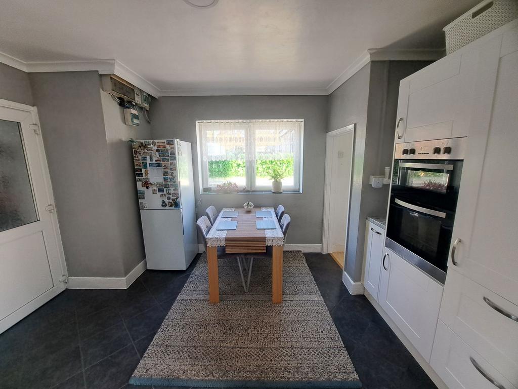 Double glazed windows to rear and side, double glazed glass panel door to rear, fitted with a range of wall and base units, electric hob with extractor fan over, plumbing for washing machine and dishwasher, part tiled walls, eye level double oven and grill, single bowl sink unit and draining board, tiled floor, double panel radiator, walk-in pantry with shelving and double glazed window to side.