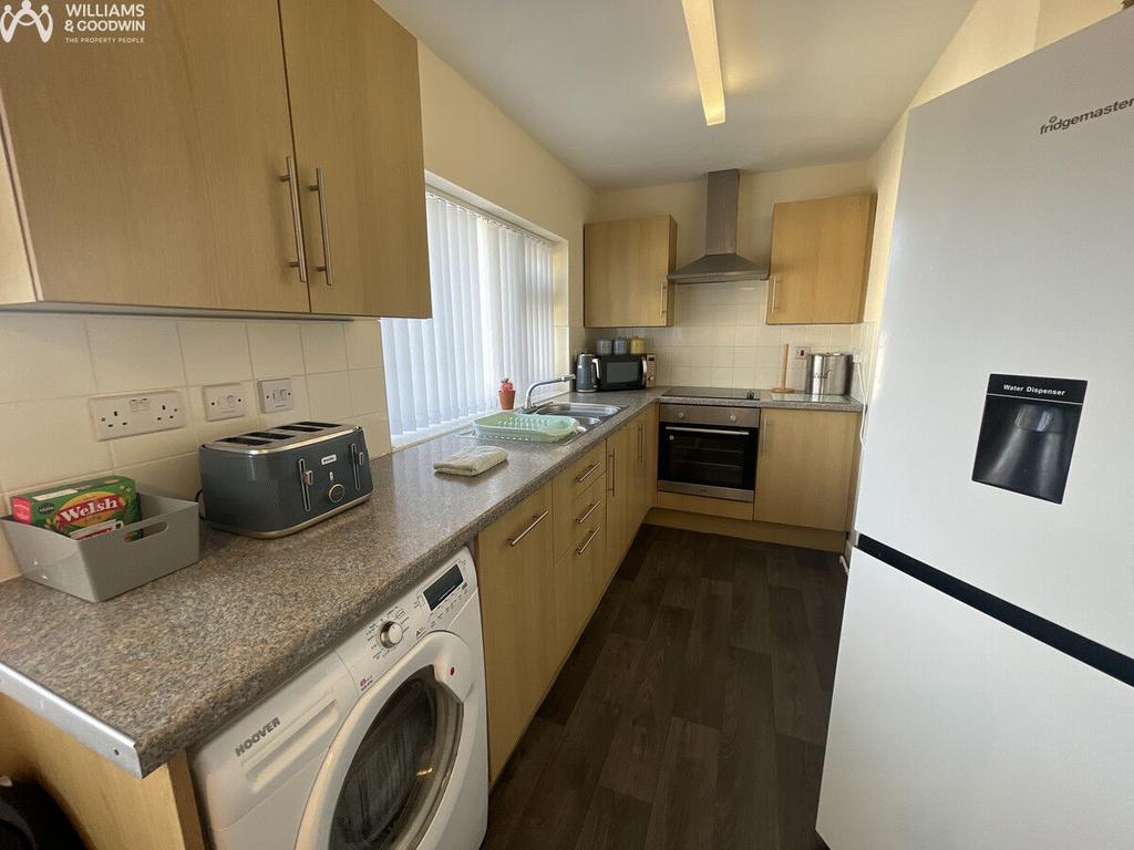 Fitted with a matching range of base and eye level units with worktop space over, 1+1/2 bowl stainless steel sink, plumbing for washing machine, space for fridge/freezer, electric oven, four ring halogen hob with extractor hood over. Two uPVC double glazed windows to rear. Radiator.
