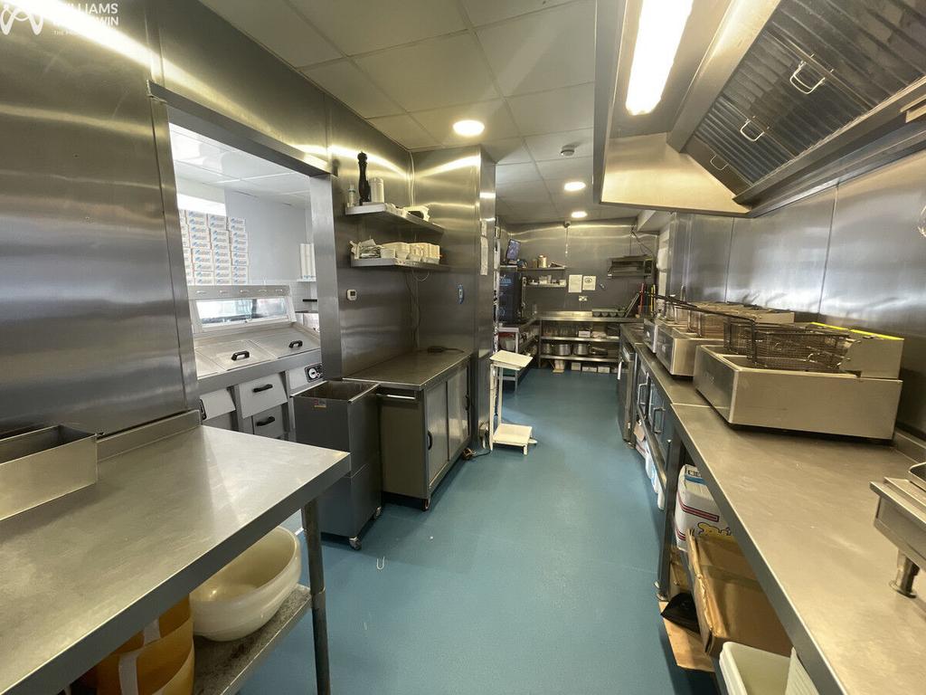 Having been refurbished some years ago with new floor, extraction systems and stainless steel equipment, storage and cladding. Open plan to: