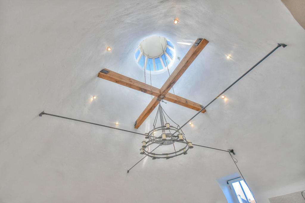 A bright and airy room that has the benefit of the Oast tower providing a feature vaulted ceiling with domed window, double glazed door to side with Juliet balcony, electric wall heater. open to: