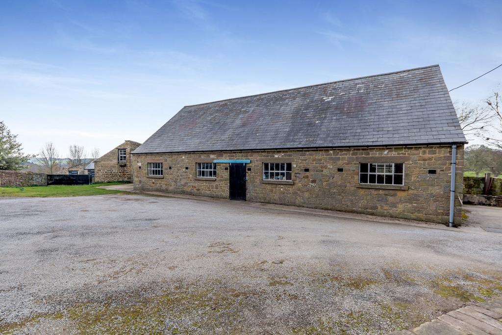 The largest structure is a substantial stone barn at the rear of the farmhouse, spanning 4,600 square feet across two levels. This barn features high ceilings on both floors, historical architectural elements, and exposed oak king truss beams on the first floor. A connected former grain store adds another 1,000 square feet.