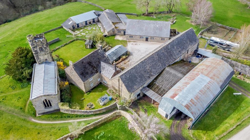 Although requiring renovation, the farmhouse provides over 2,300 square feet of living space over two floors. This includes two living rooms, a sizable pantry, and a breakfast kitchen at ground floor level, with five bedrooms and a family bathroom on the first floor.
