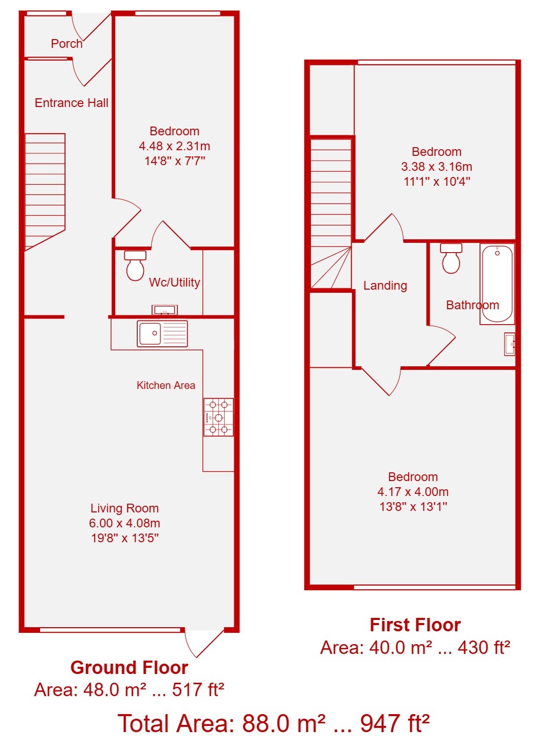 FIRST FLOOR: Landing * Two bedrooms * Family Bathroom with modern white suite