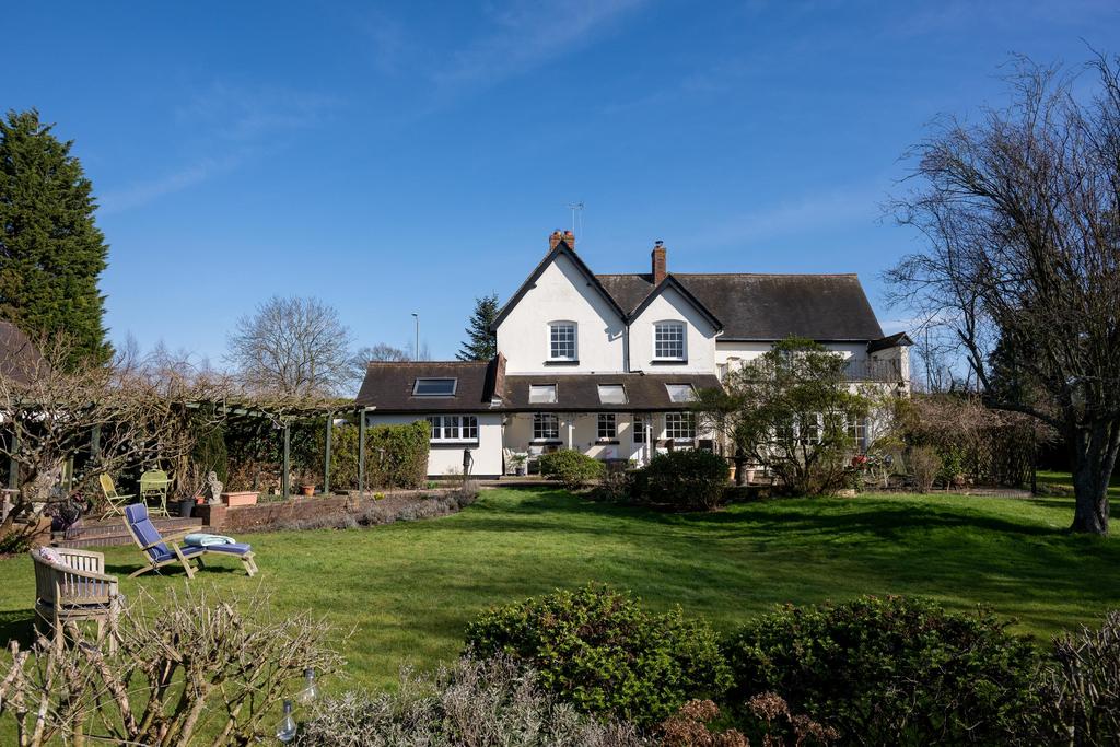 Stairs in the entrance hall rise to a bright and airy first-floor landing, which provides access to an elegant principal bedroom with a modern en suite bathroom and terrace, three further bedrooms, each offering a different aspect of the garden and surrounding countryside, and a family bathroom.