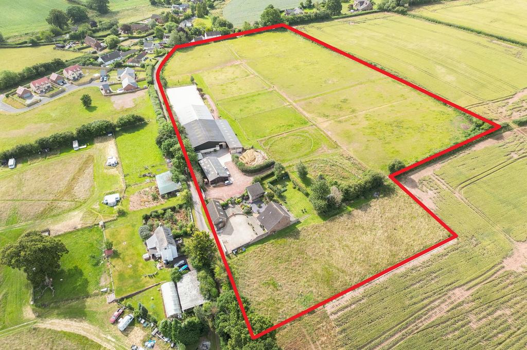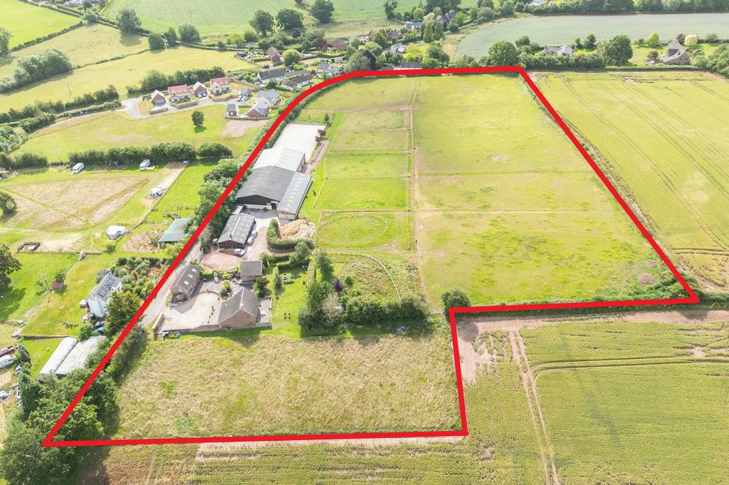 The land at Meredith Barns extends out to the north-west, south-east and predominantly to the south-west of the dwellings, yard, buildings and arena in a ring fence.