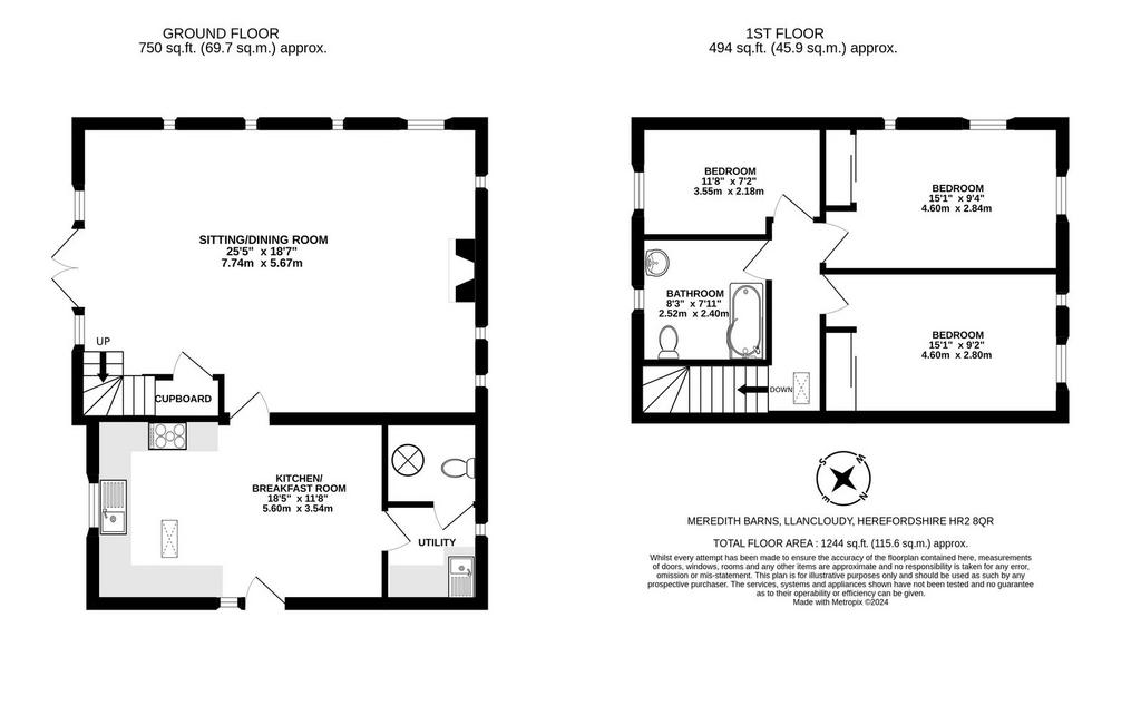 Directions: From Monmouth proceed north on the A446 in the direction of Hereford for 6 miles. At Llancloudy, pass the chapel on your left-hand side and then immediately turn left. Proceed straight for 1 mile. The Entrance gates to Meredith Barns will then be on your left-hand side. Postcode: HR2 8QR (The postcode will not take you to the exact address.)