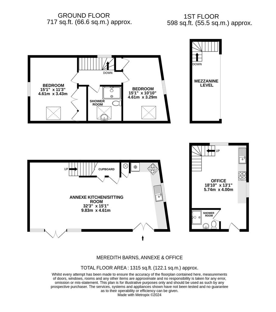 Last is the office which is positioned to the southeast of the farmhouse and set away from it. The office is of traditional stoned elevations under a monopitched slate roof and comprises a shower room with wc and wash basin, an open plan kitchen/sitting area which has been used as an office and a mezzanine floor which can be used as a bedroom.