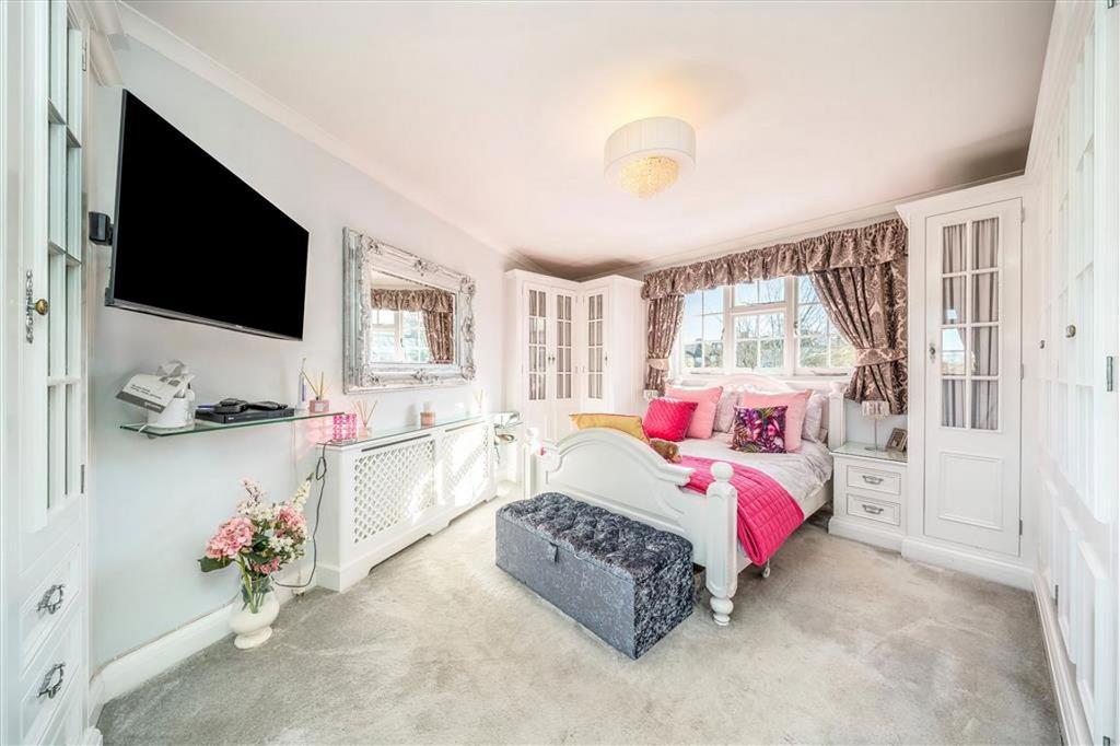 On the first floor are four bedrooms, three of which have bespoke fitted wardrobes and a large family bathroom all arranged around a light central landing. There is scope to extend into the loft and increase to five bedrooms, three bathrooms, subject to planning but there is ample precedent.