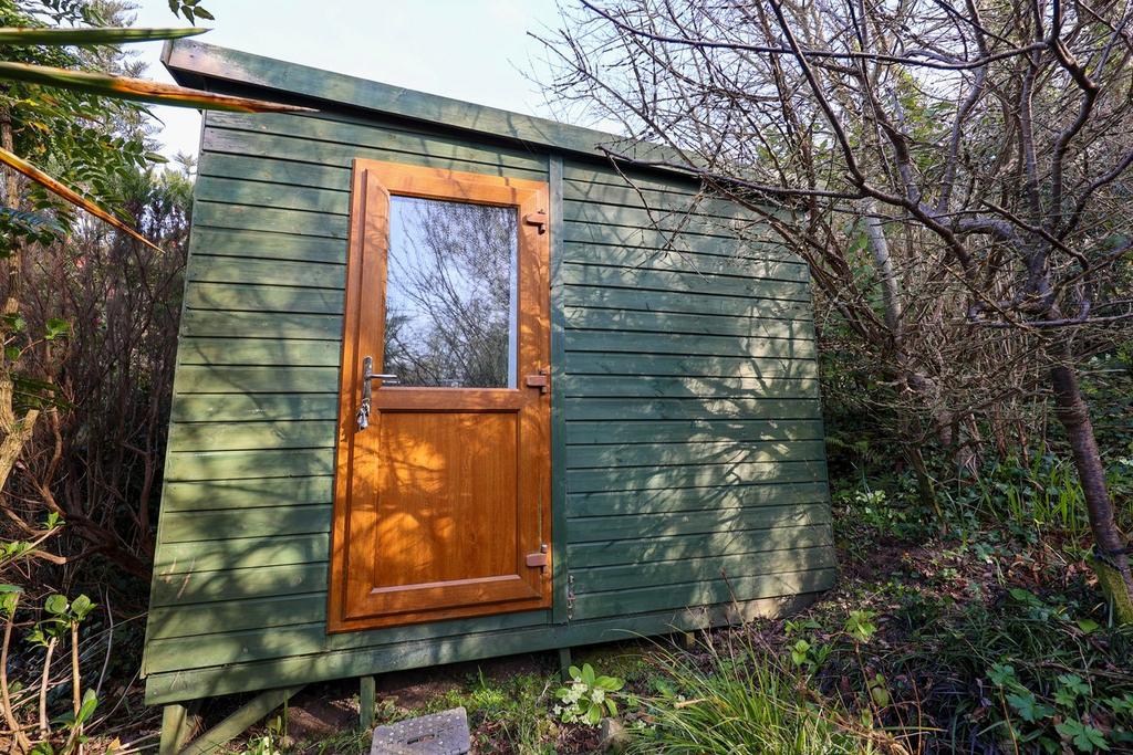 Outside, to the side of the property, you'll find a convenient concrete parking area alongside a gate providing access to the side and rear. Steps lead up to an inviting raised patio area, with further steps leading to an expansive garden, with a variety of shrubs, offering a delightful outdoor retreat. Within the garden we have a large double glazed cabin 14' 0" x 10' 0" (4.27m x 3.05m) with light and power making it a perfect home office or quiet garden room , ideal for relaxation.