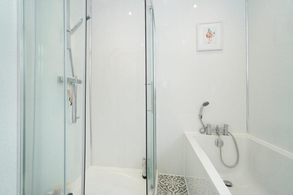 Bedroom 1 is a large double room with ample space for additional furniture and pleasant open outlooks along Cleddans Crescent. Bedroom 2 is a well-proportioned double bedroom with free-standing wardrobes and a side window to the patio. The modern bathroom is finished in wet-wall panelling and comprises a 4-piece suite with a glazed enclosure and a mains mixer shower.