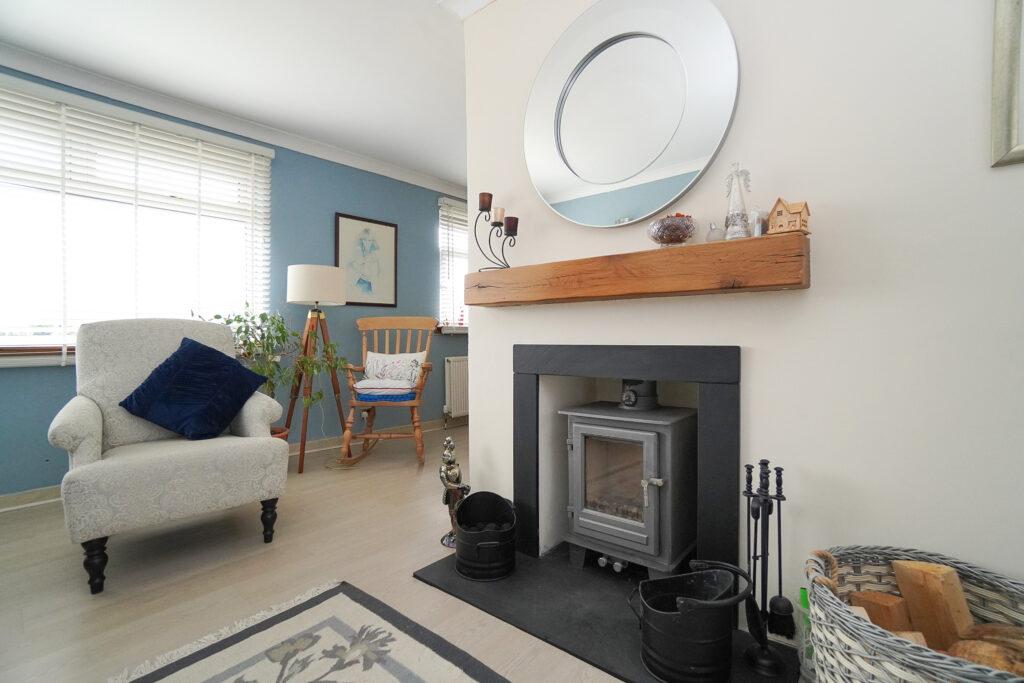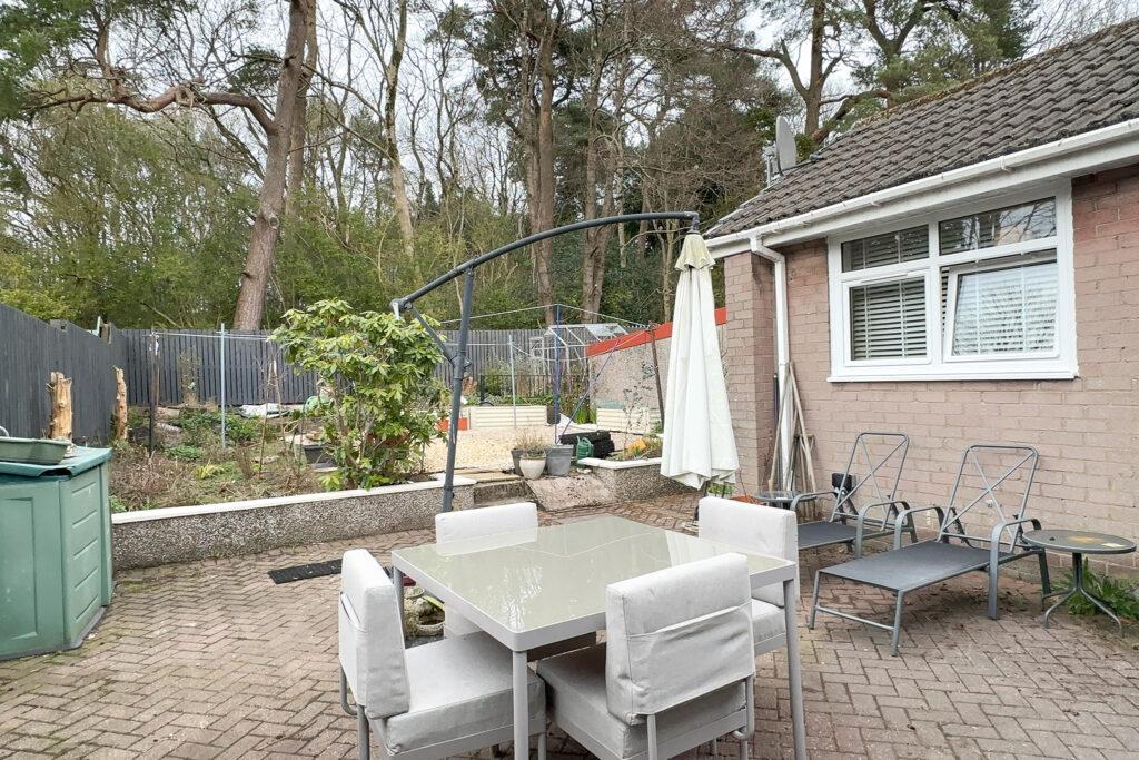 The front garden provides a level lawn, which is enclosed by border fencing. At the side, the driveway can accommodate 3-4 cars and leads to the generous, automated single car garage. The secluded rear garden has been landscaped for easy maintenance and year-round use. It comprises a large, sheltered patio area and further garden section beyond which has been finished in attractive blonde chip-stones.