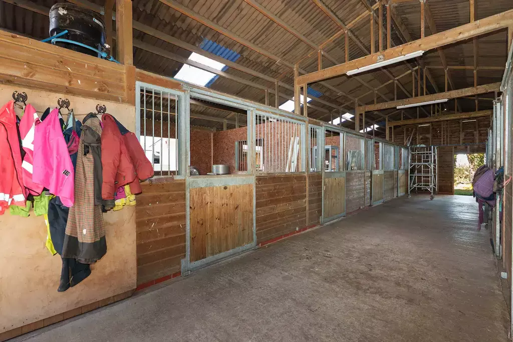 - Extensive equine facilities include an American style barn with stabling 8 individual stables, tack room and feed area