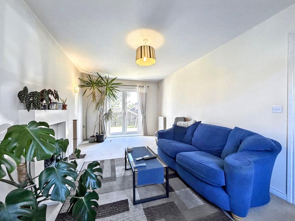 There is a double glazed window to the front, two radiators, a tv point, a feature fireplace and french doors to the rear garden.