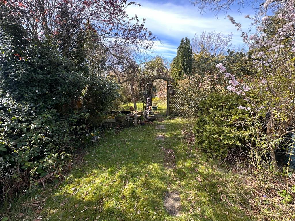 Private enclosed mature gardens with terrace flower bordersm ornamental ard=chway and fish pond. Lawns, and many lovely shrubs and herbaceous borders. Separate fenced off area to rear.