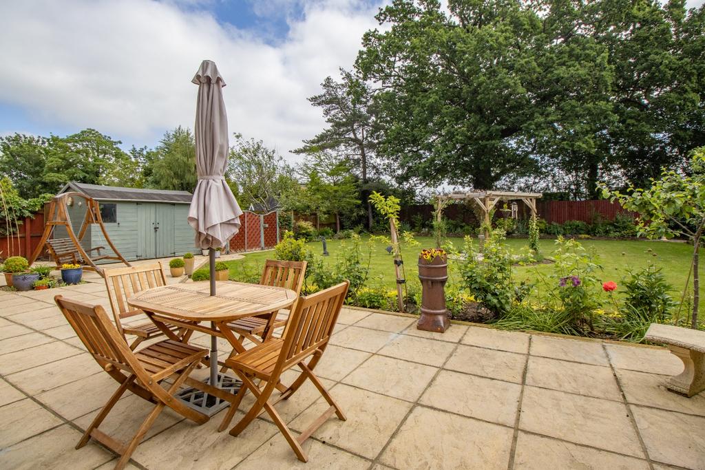 This house benefits from an integral double garage at the front of the property and driveway space providing ample parking. The garden is incredibly well kept, a large lawned area is bordered with mature plants and shrubs. A patio stretches the width of the property providing the perfect area for outdoor furniture.