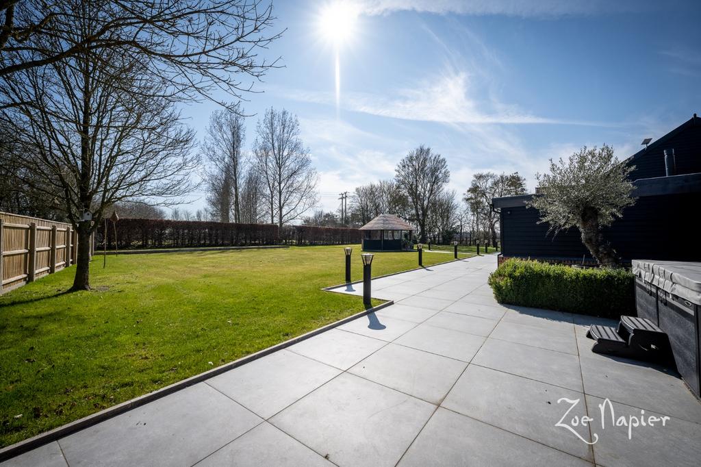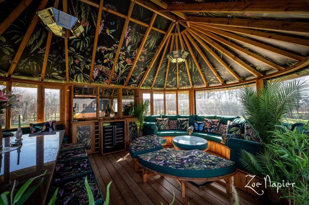 The Rear Garden enjoys a moat on the western boundary. Expansive terrace areas with a path lead to the magnificent Oval Breeze House (special edition) designed by Avalana Design; a luxurious Gazebo with intricate hand painted rainforest design provides that extra opulence to this stunning family area, where the sides can roll up or remain down. The cost as new was £58,000 and to remain with the property. There is also a Hydropool hot tub that can be available by separate negotiation. A beech hedge lines the rear boundary of the garden where a footpath divides the garden and paddock. The paddock has a tree lined avenue and is suitable for modes equestrian use. A small enclosed garden lies to the side of the property where there is a services room housing the modern boiler and a Groundfos water booster. The two beautiful 140 year old potted Olive Trees will remain due to their size and weight.