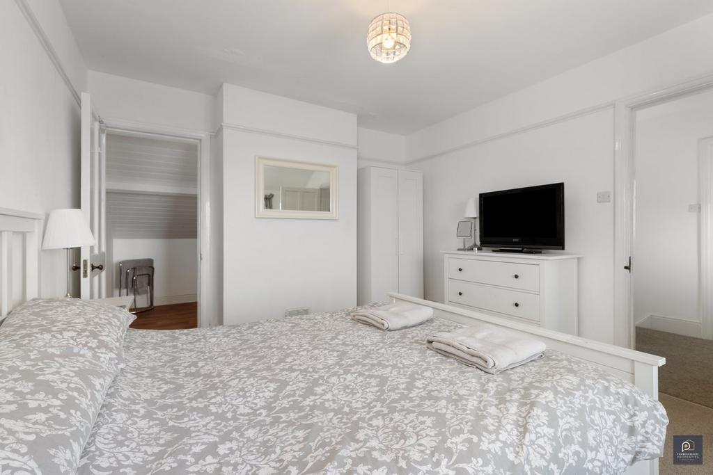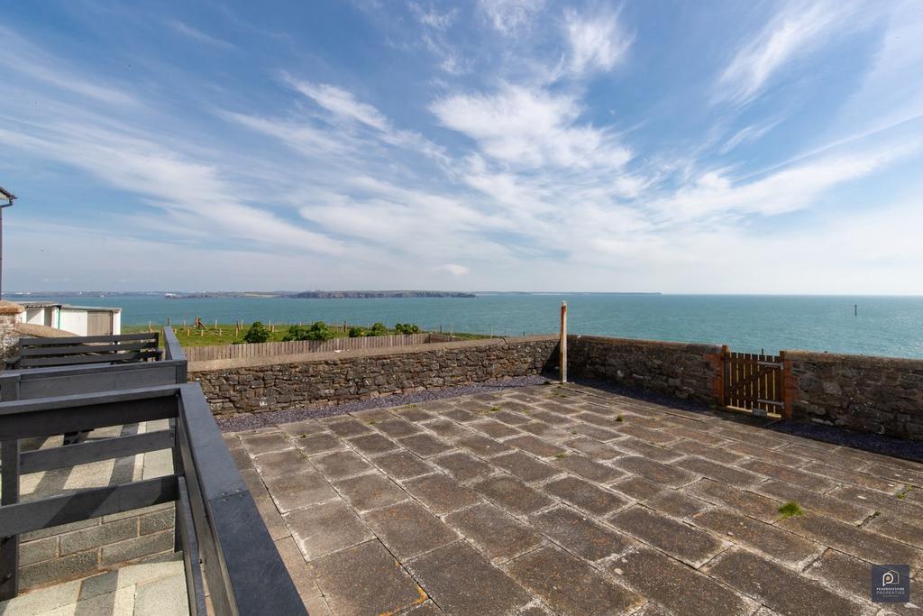 Externally, there is a large enclosed garden with a built in barbecue. The first area is a raised patio with steps down to lower patio, fenced and gated and enjoying stunning sea views. There is access to utility room with washing machine, tumble dryer, freezer and handy storage area for bicycles. There is private off-road parking for three cars to the fore of the property.