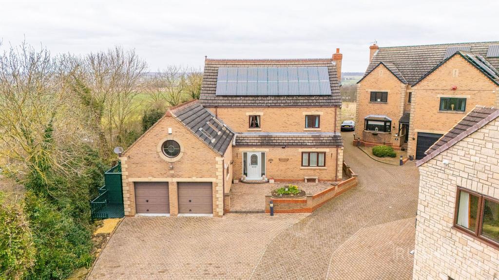 LOOKING FOR YOUR DREAM HOME? EXPECT TO BE IMPRESSED! We are delighted to offer for sale this SPACIOUS five bedroom detached house, situated in a quiet, elevated position on the edge of the village, offering stunning panoramic views. Part of a small three-property development, this substantial family home is offered with NO UPWARD CHAIN. Further benefits of the property include underfloor heating throughout the ground floor, owned solar panel installation producing over 4 megawatt-hours per year and generating a substantial tax-free feed-in tariff income until 2036, CCTV security system for peace of mind, Full fibre internet for ultra-fast connectivity and LED lighting throughout for energy efficiency. This fantastic family home offers an exceptional blend of spacious living and countryside charm—perfect for those looking for a peaceful yet well-connected lifestyle. Viewing is highly recommended, don’t miss out on this unique opportunity!