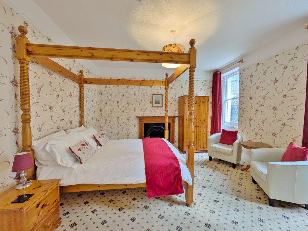 Double room with four-poster bed. Two sash windows to front with river views. Feature fireplace (capped). Large en-suite shower room.
