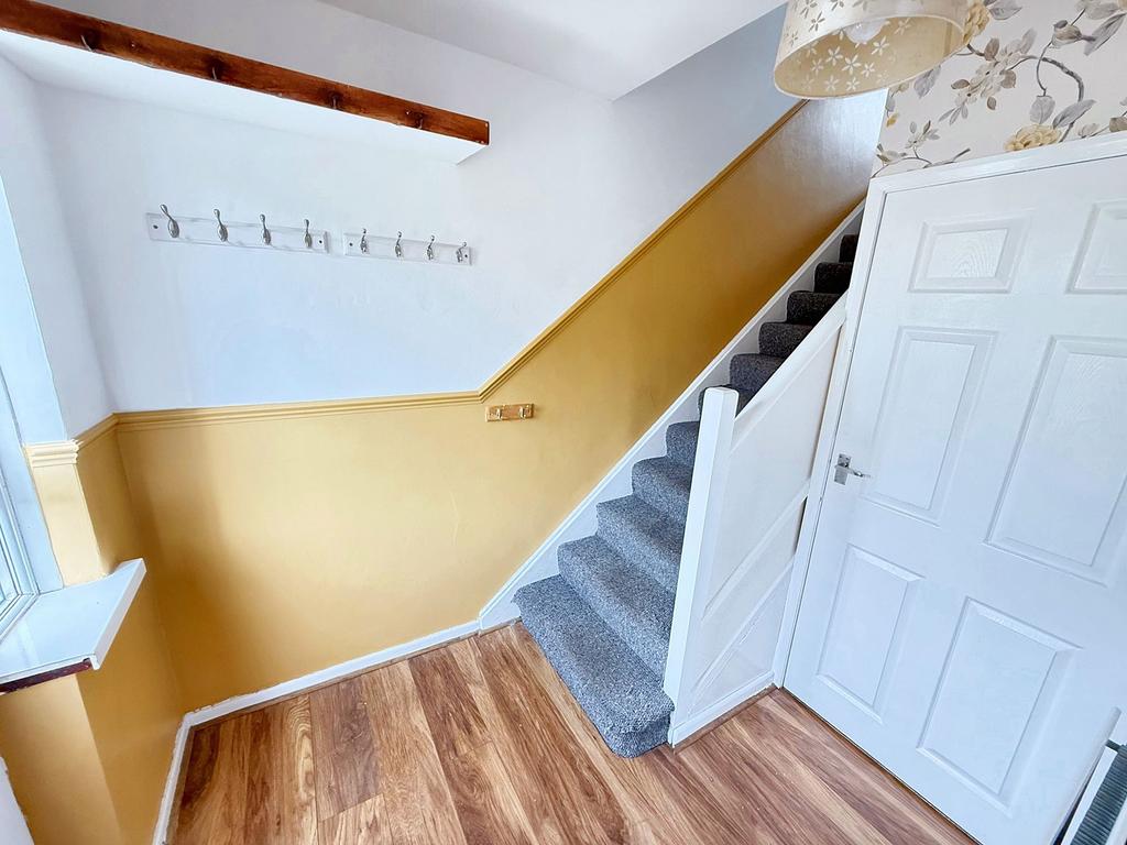 Double glazed entrance door and window, double radiator, built in cupboard, stairs to the first floor, door onto storage/utility room.
