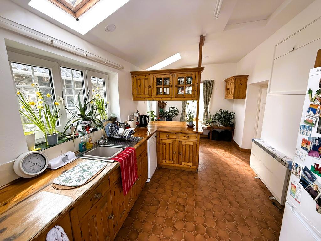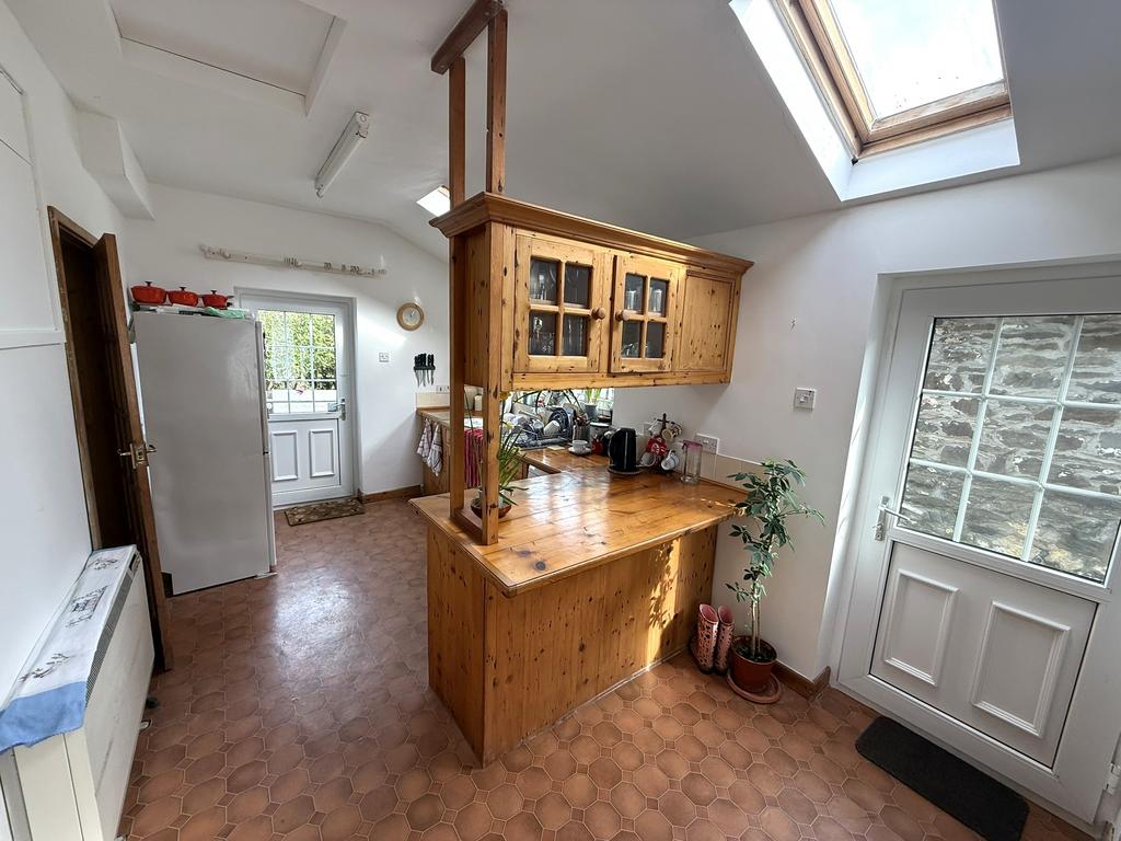 Double glazed windows to rear and side, double glazed side and rear entrance doors, Base units, plumbing for dishwasher, single bowl and drainer sink unit with mixer taps over, 2 ‘velux’ windows to rear, night storage heater, fixed bench seat, door returning to the main Living Room.