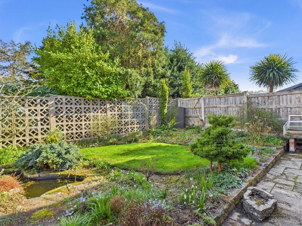 The front of the property features a driveway providing off-road parking, complemented by a small front wall and mature flower borders for added charm. A gated side entrance leads to a beautifully maintained and well-stocked rear garden, offering a tranquil retreat with a rockery, pond, and a variety of mature shrubs and trees. The garden also includes a greenhouse along with an outside tap for added convenience. Completing the exterior is an attached garage with an up-and-over door to the front aspect, providing additional storage or parking space.
