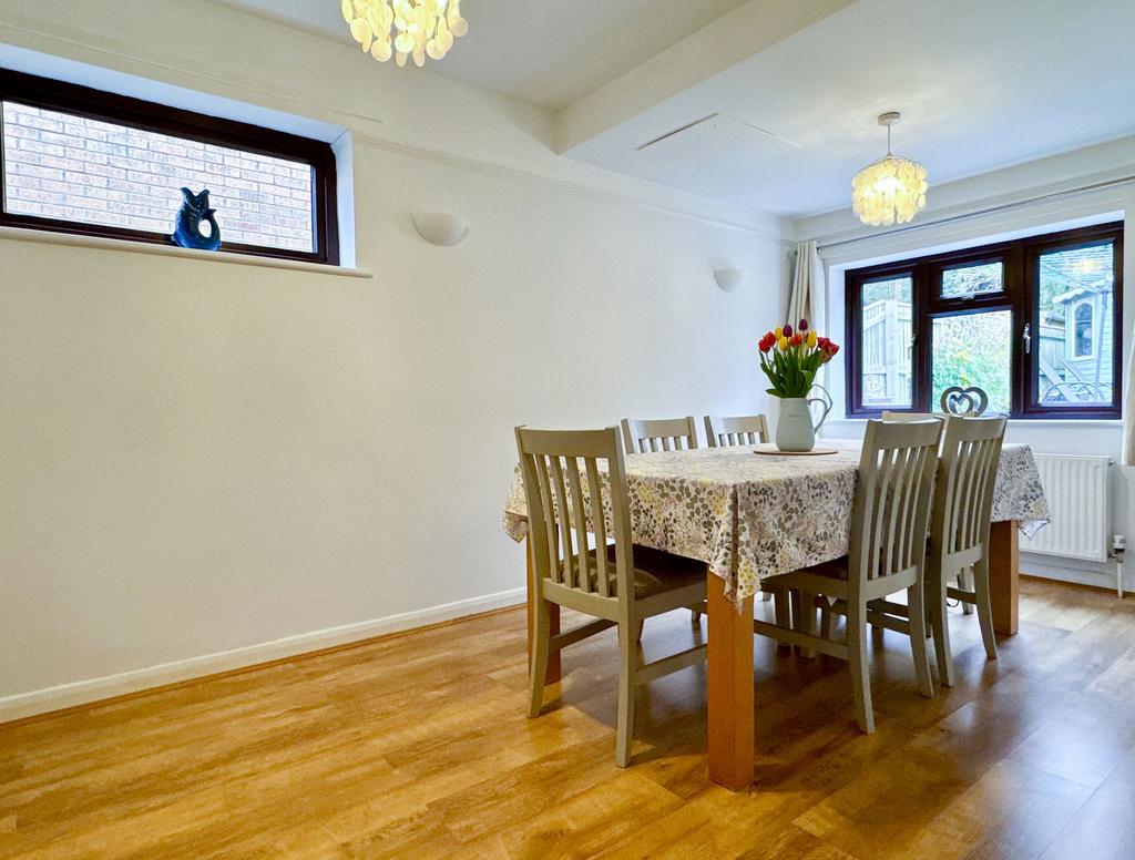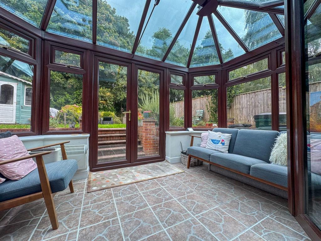 The lounge is a truly impressive room, defined by its generous proportions. A charming fireplace serves as the focal point, adding warmth and character to the space. French doors open into a light-filled conservatory, further enhancing the room’s sense of openness. Parallel to the lounge is the expansive formal dining room, which is bathed in natural light from a large the property's large uPVC window, making it the perfect setting for social gatherings and family occasions. This home offers an exceptional layout, ideal for both relaxation and entertaining.