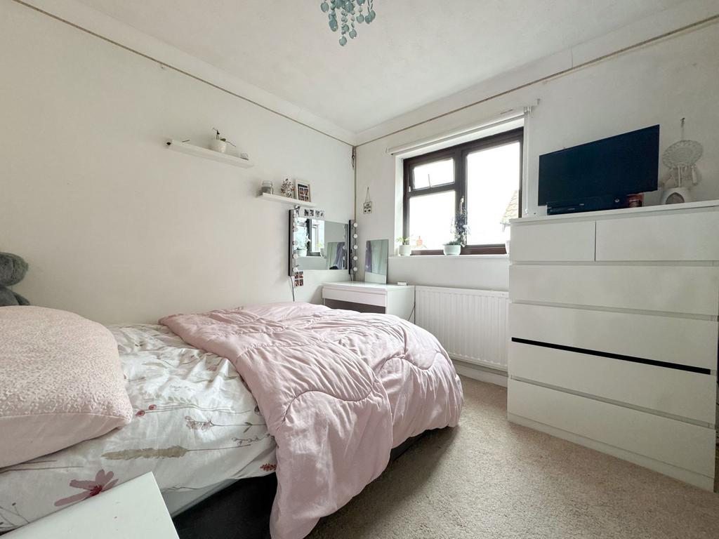 At the front of the property, a spacious driveway offers ample parking for two vehicles, with the added convenience of a single-car garage situated alongside. The front of the property is complemented by a substantial garden, thoughtfully landscaped, with a paved path leading to the main entrance.