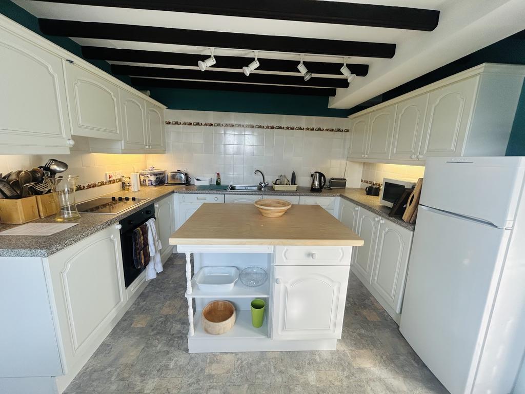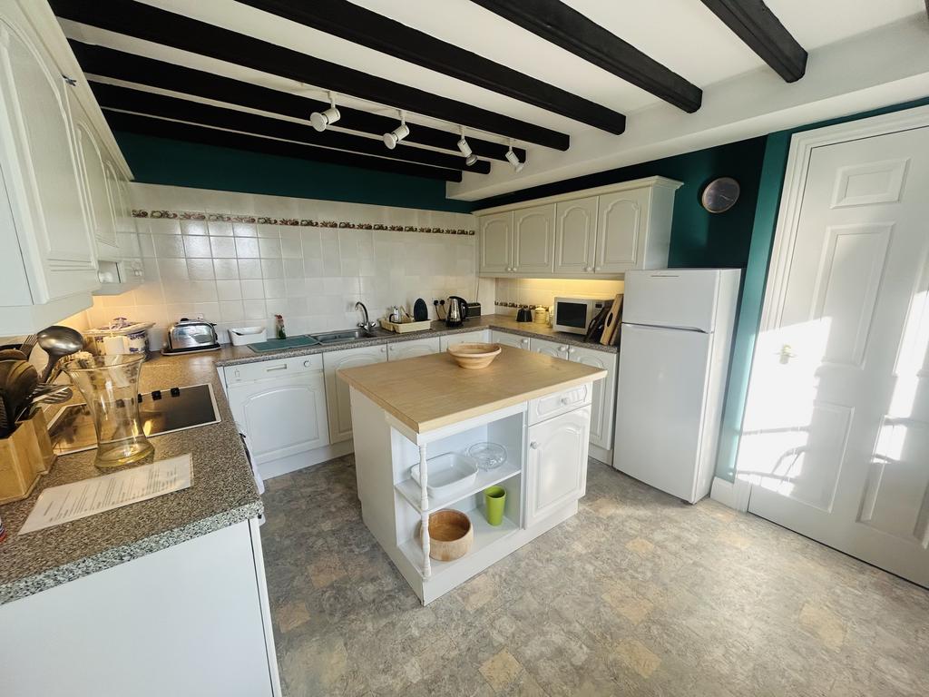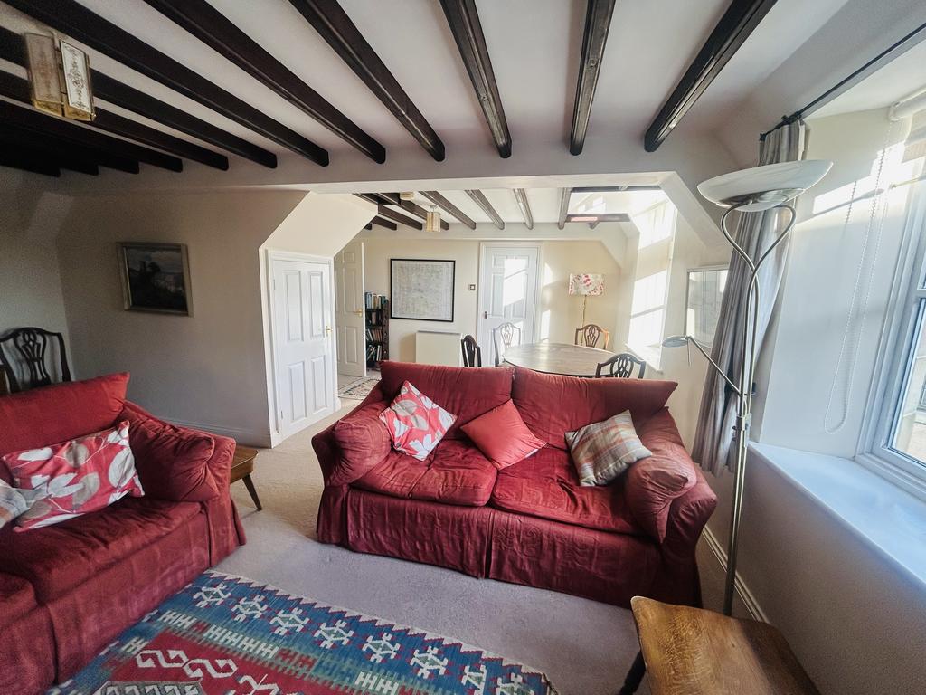 The private entrance on the first floor leads into an entrance hall with a staircase to the second floor and a door through to the spacious living room/dining room with large feature windows providing ample light to the room. Beyond there is a door leading to the kitchen with a modern range of kitchen units, integrated electric oven and hob, breakfast bar and space for a small breakfast table by the window. There is also a separate utility with a useful storage cupboard, plumbing for a washing machine and space for a tumble dryer. At the far end of the living room, there is a door through to the master bedroom (double) and a good sized ensuite bathroom with bath and electric shower over, W.C., pedestal basin and bidet. There is a large linen cupboard in the ensuite bathroom housing the hot water cylinder.