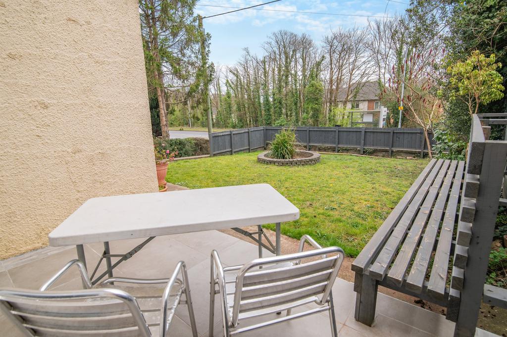 Side access leads you to the rear garden, where you'll find a detached garage offering excellent storage or workshop potential. The garden itself is thoughtfully designed with split-level areas, combining a patio space ideal for outdoor dining and entertaining with a well-maintained lawn, perfect for children to play or for gardening enthusiasts.