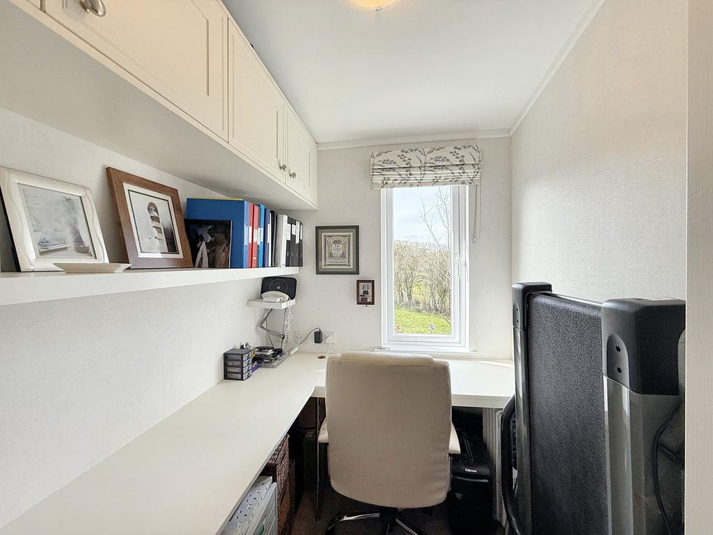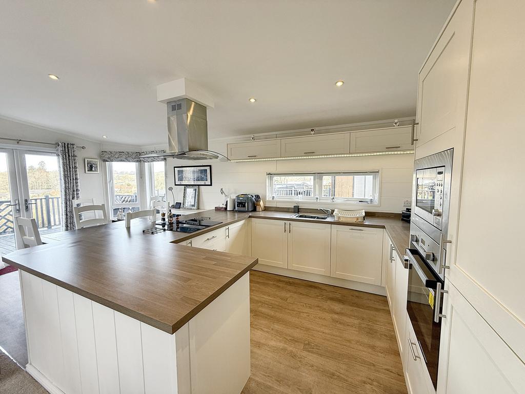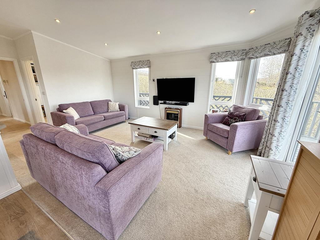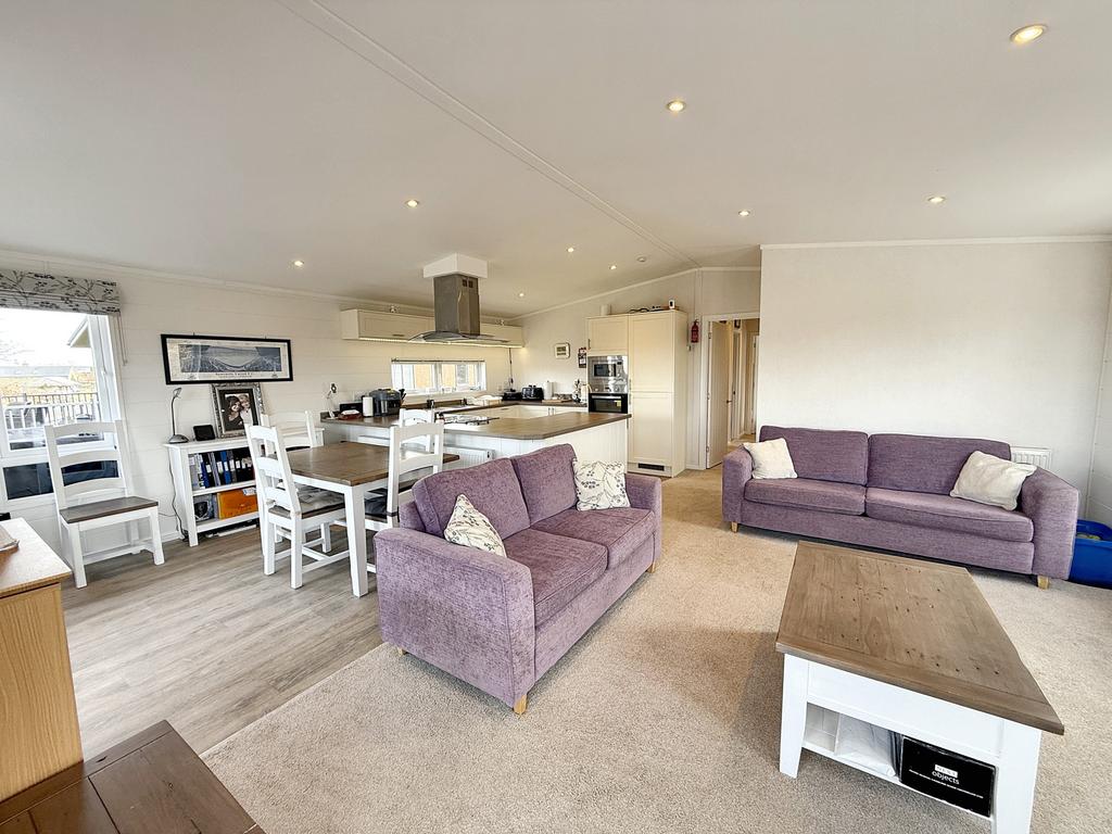 This wonderful Prestige Navigator (45'x22') lodge occupies an elevated position on this residential development of only 12 homes. The home features an open plan kitchen, living and dining room, with French doors leading out onto the large decking. There is a utility room, a study, two double bedrooms, an en suite and a bathroom. The home has a large garden space with a shed and patio.