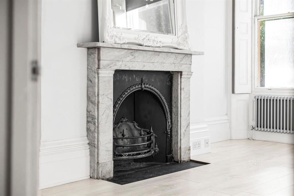 Bedroom - 4.87 x 3.56 (15'11" x 11'8") - Period fireplace in spacious room with radiator. Two large sash windows with period features.