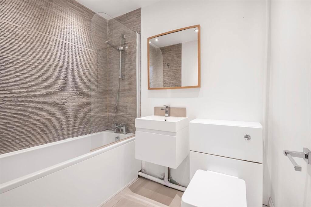Bathroom - Newly refurbished with a modern sink unit, w.c., bath and shower.