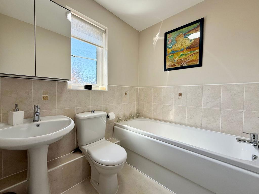 On the first floor, you’ll find a generous lounge, providing a relaxed space to unwind. There is also a bedroom on this floor, which could easily be used as a study or guest room. The second floor is home to a main bedroom with an en-suite shower, along with a second double bedroom and the family bathroom. Both bedrooms have fitted wardrobes.