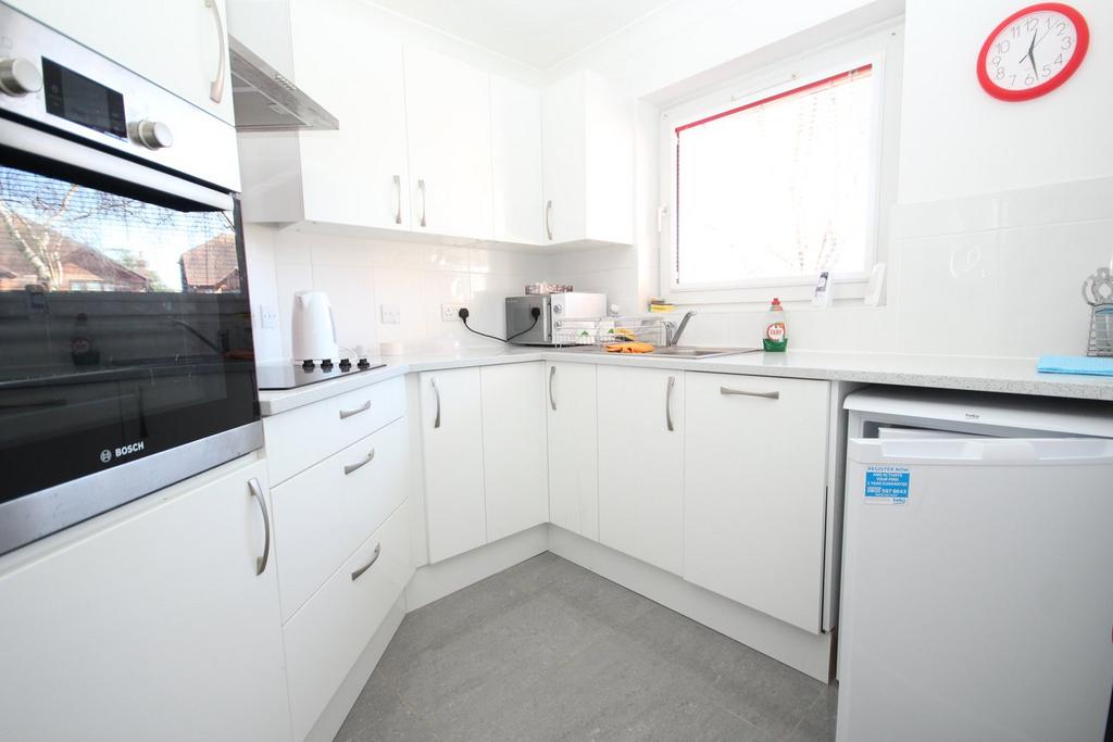 7' 10" x 7' 4" (2.39m x 2.24m) A well fitted kitchen to include wall and base units with work surfaces over, unit containing two bins for refuse and recycling, undercounter fridge with freezer compartment, inset sink unit, hob and oven, double glazed window.