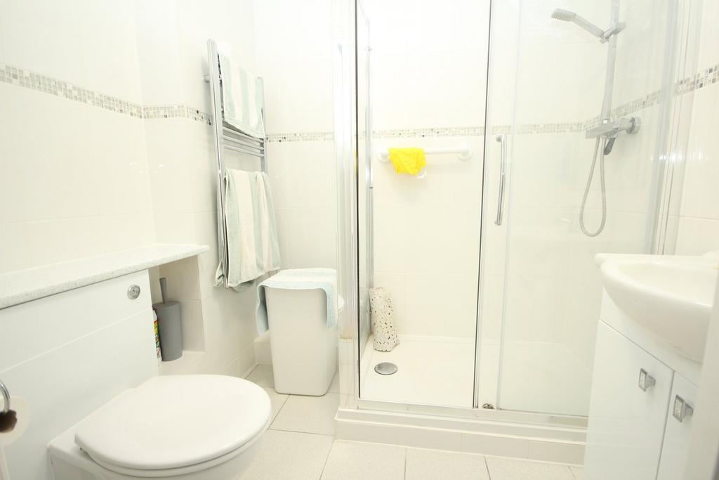 6' 9" x 6' 5" (2.06m x 1.96m) Beautifully appointed with oversize shower cubicle, wash hand basin inset in to vanity unit, inset w.c., tiled flooring and walls.
