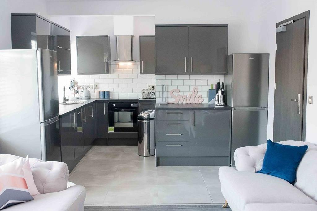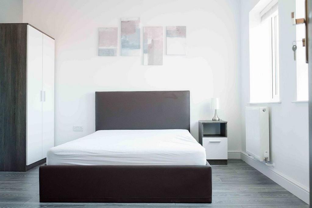 The building has been converted into three large flats and refurbished to a high standard, providing residents with comfortable cosy interiors, gas central heating and new UPVC windows. Insulated to British standards - the energy efficiency rating is band C. The property caters for professional tenants only and is completely furnished and attractively decorated. There is a large communal kitchen-living space which includes a dining area, comfortable lounge furniture, large flatscreen Smart TV and fully equipped kitchen. The kitchen has a full size dishwasher, electric hob with a glass extractor above, a fan assisted oven, two large fridge freezers and modern microwave, kettle and toaster. There is also ample worktop and cupboard space for all residents as well as cooking and food preparation utensils, pans, cutlery, crockery, mugs, etc
