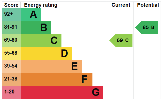 The bathroom has an opaque window to the rear elevation, a heated towel rail and laminate flooring. There is also a WC, vanity basin and a bath with a mains shower and a glass screen.