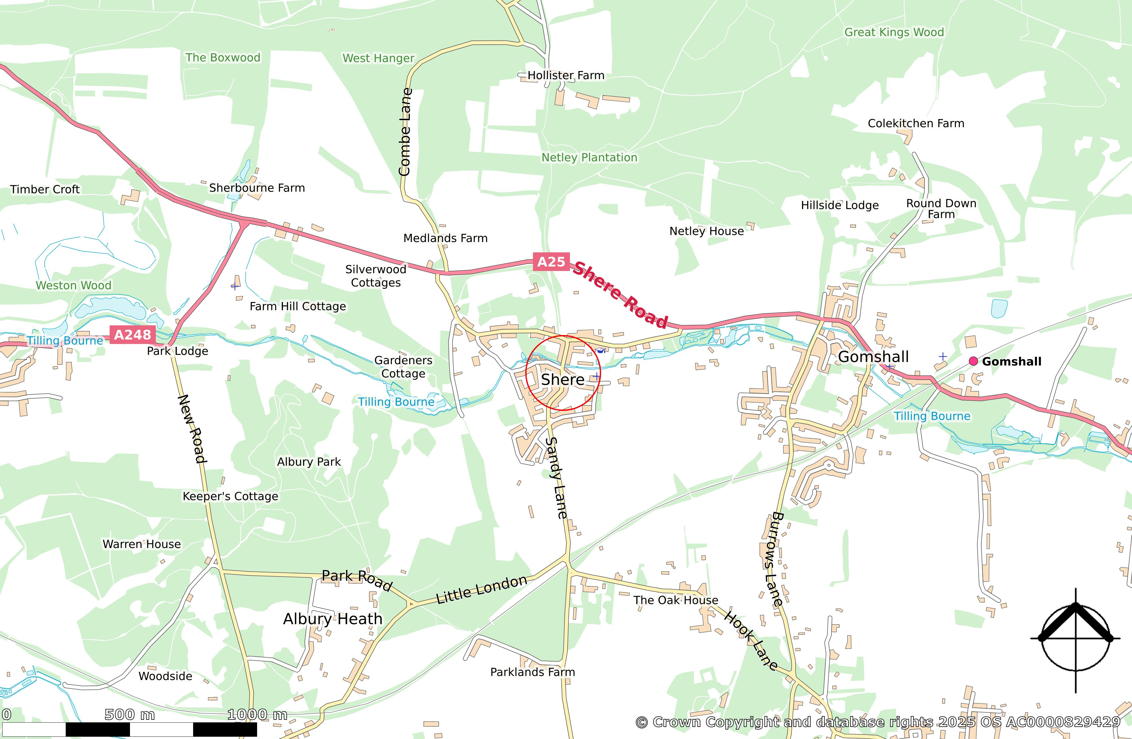 - Not listed. AONB. Conservation Area-Shere. Green Belt