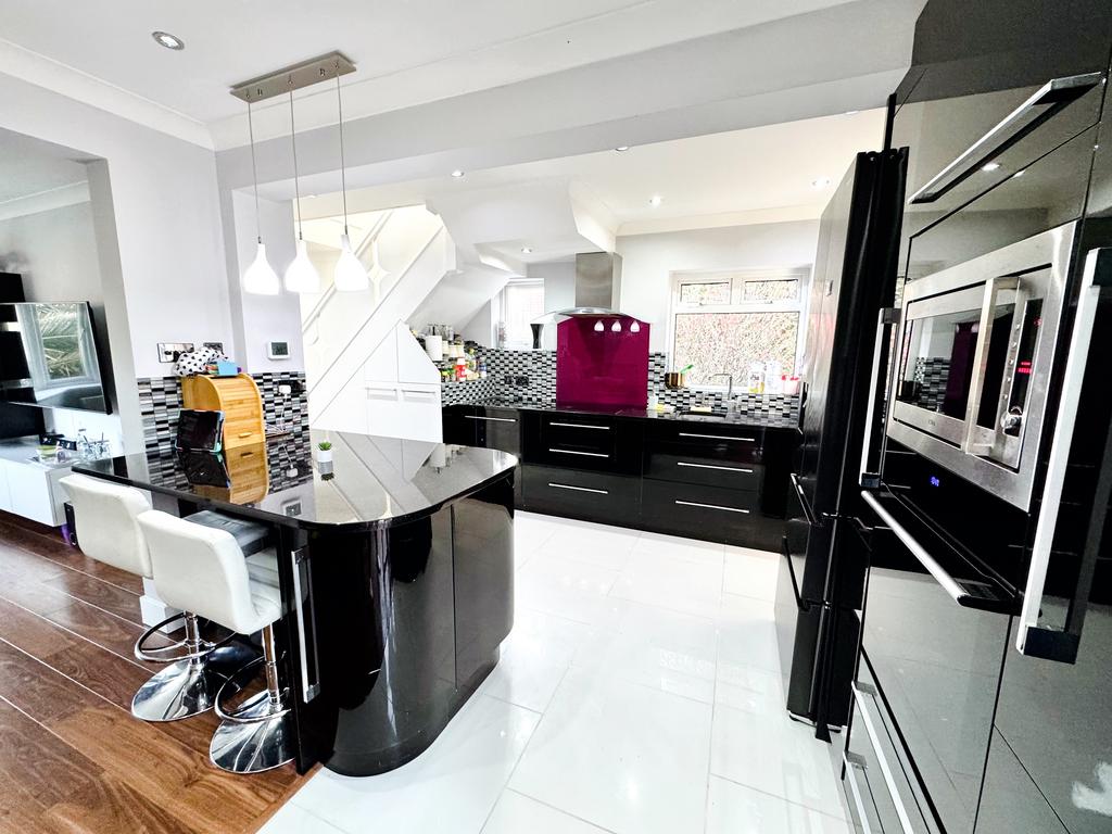 Ground Floor: Step through the front door and into an expansive, open-plan living space that combines modern design with functionality. The generous living room, featuring a large bay window, is flooded with natural light and offers a peaceful retreat. Its seamless connection to the dining area, which leads through French doors into the rear garden, is ideal for enjoying family time or entertaining guests in the warmer months.